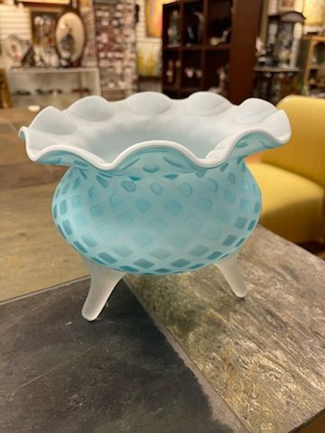 Vtg Blue Quilted Footed Bowl