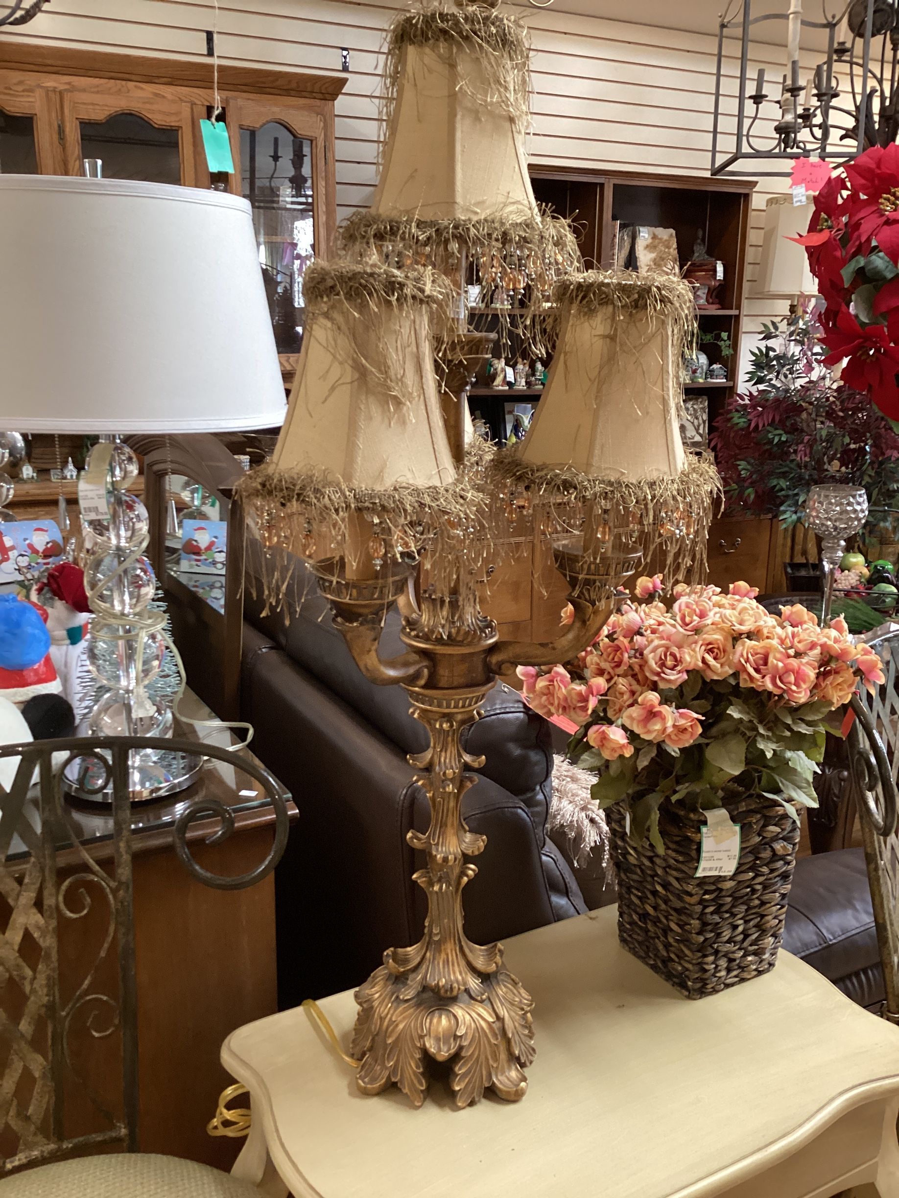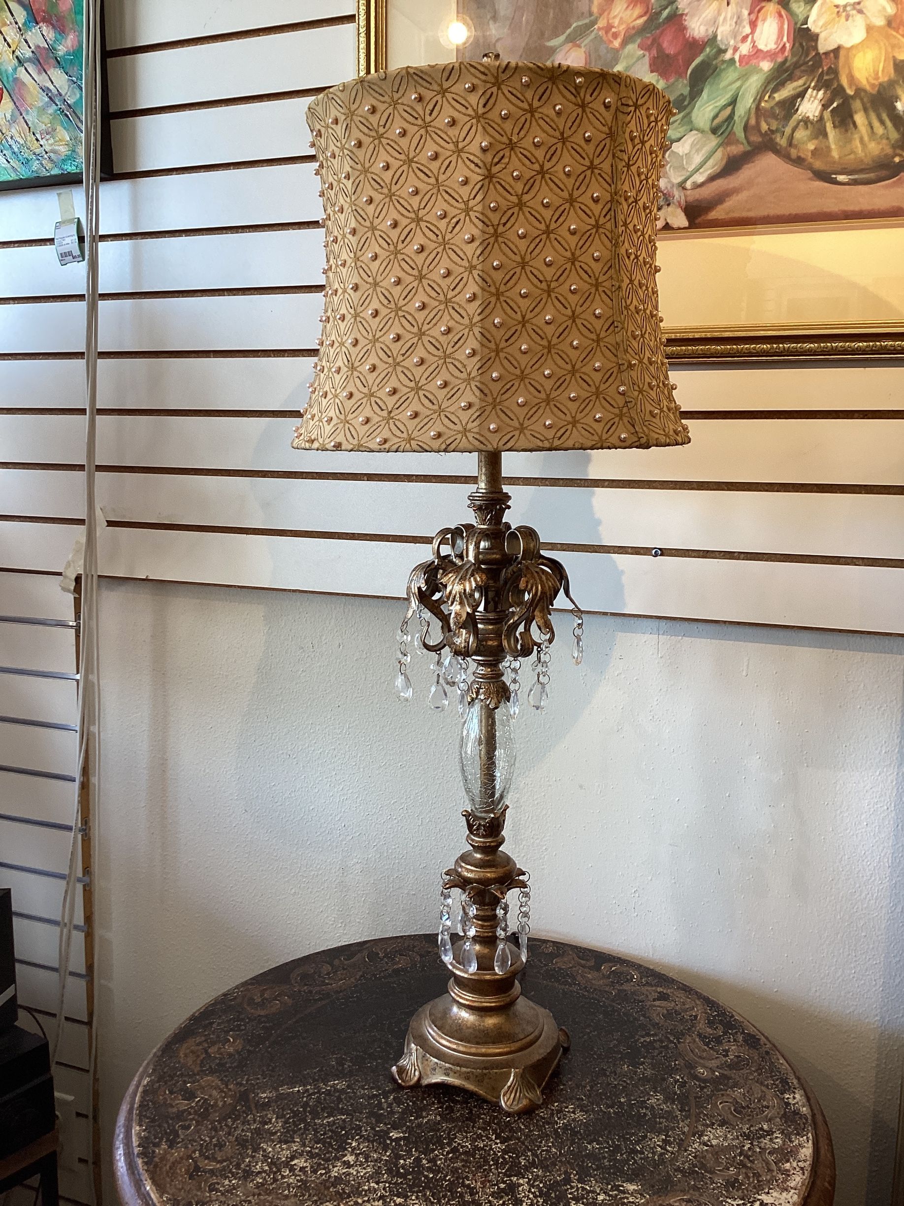 Gold Ornate Pearl Shade Lamp