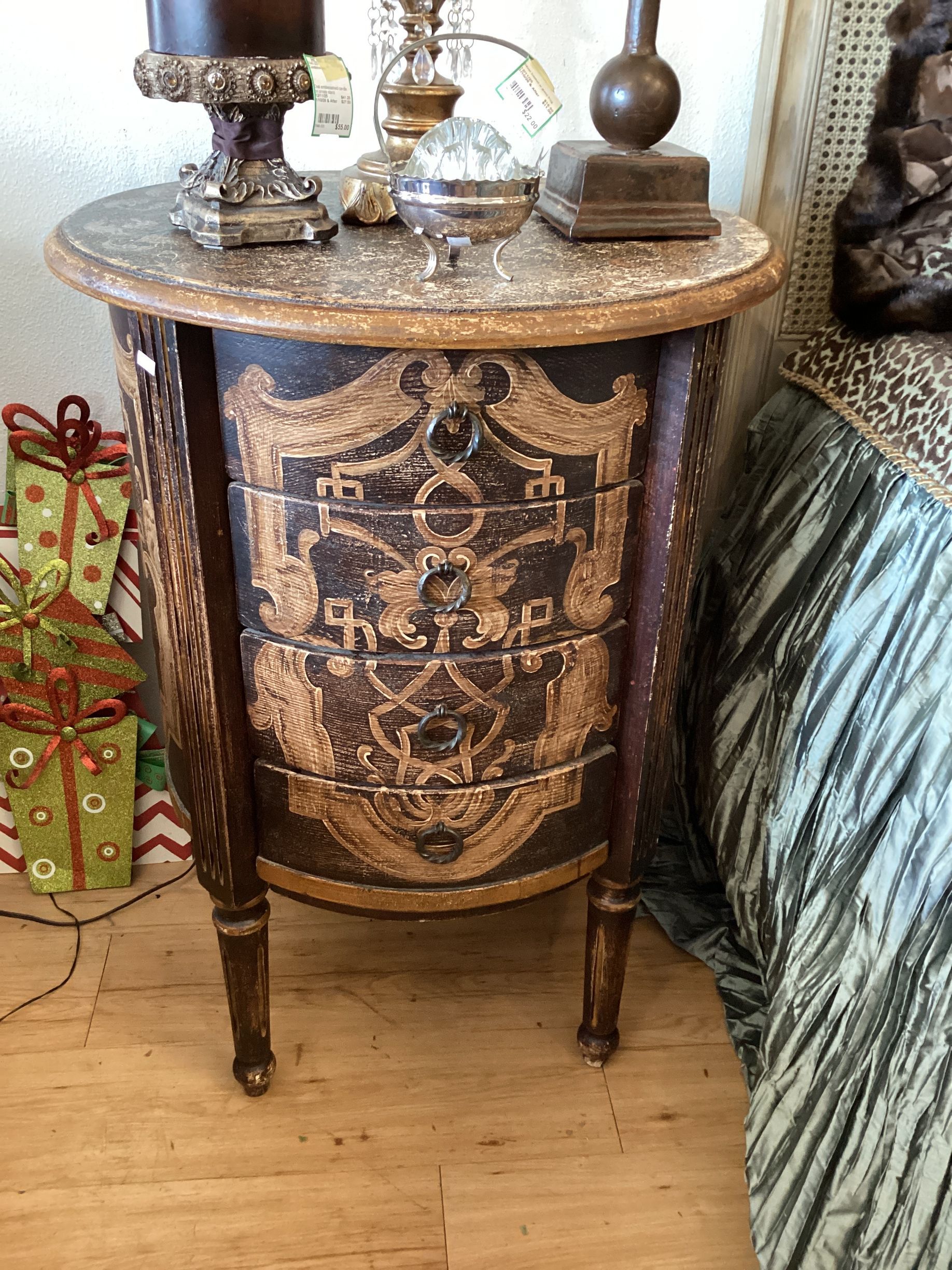 Black Gold Round Nightstand